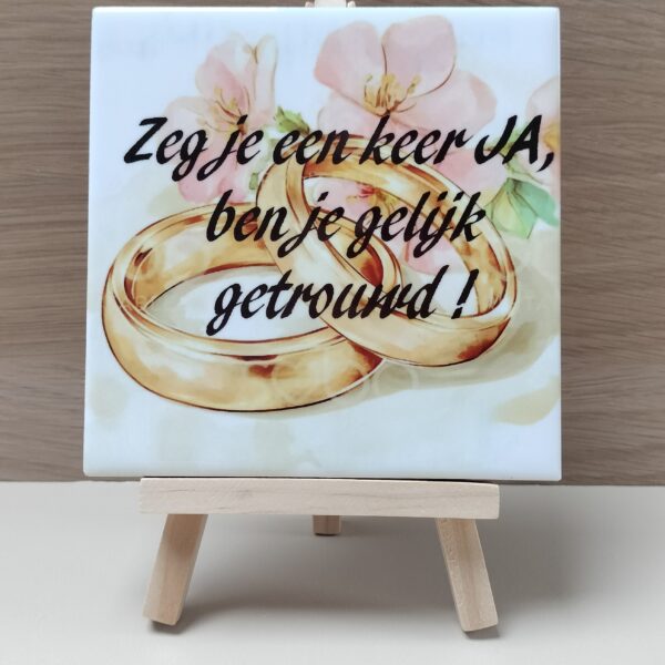 Wij & Blij – tegeltje – zeg je een keer ja ben je gelijk getrouwd