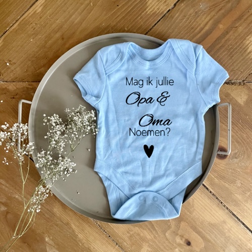 De rompertjes zijn er in het wit, roze en licht blauw. Wil jij de geboortemaand of een andere naam op het rompertje, alles kan! laat het ons vooral weten 🙂